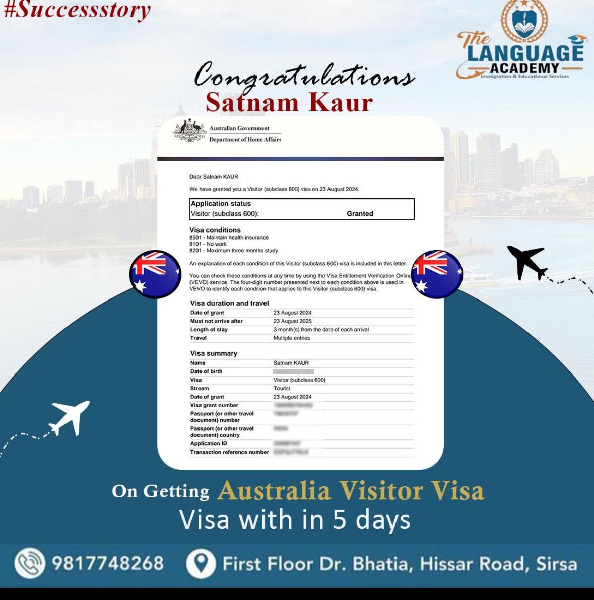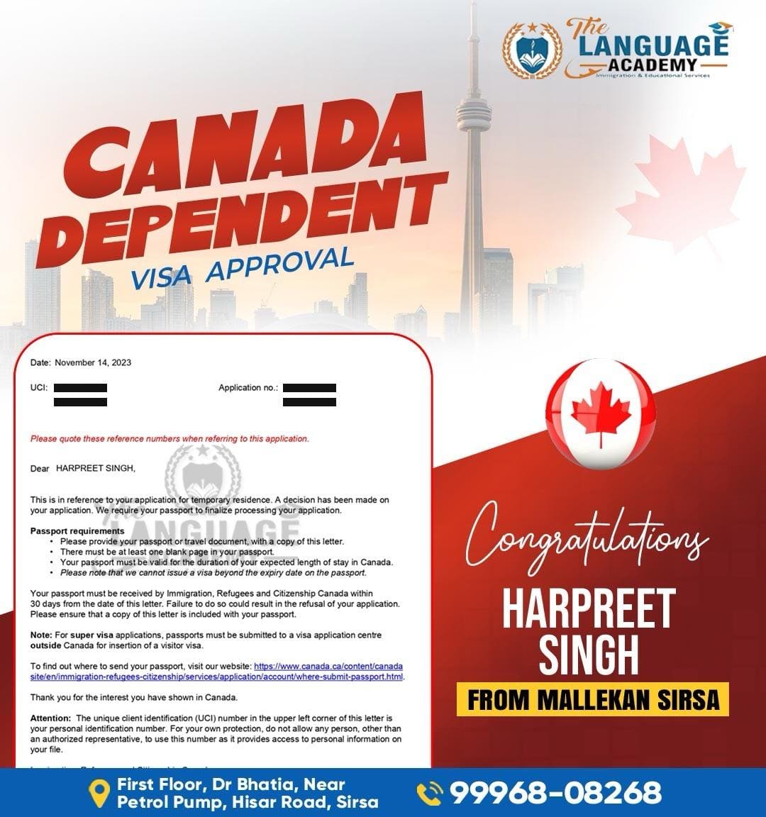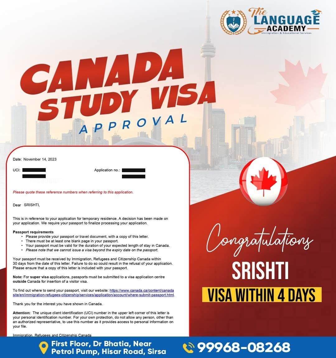 Aim of The LANGUAGE ACADEMY Immigration & Educational Services Consultancy is to serve the applicants who are internationally relocating via Study, PR and Tourist. Our forte lies in providing proper guidance and step-by-step following so that the client gets complete knowledge on visa processing.
