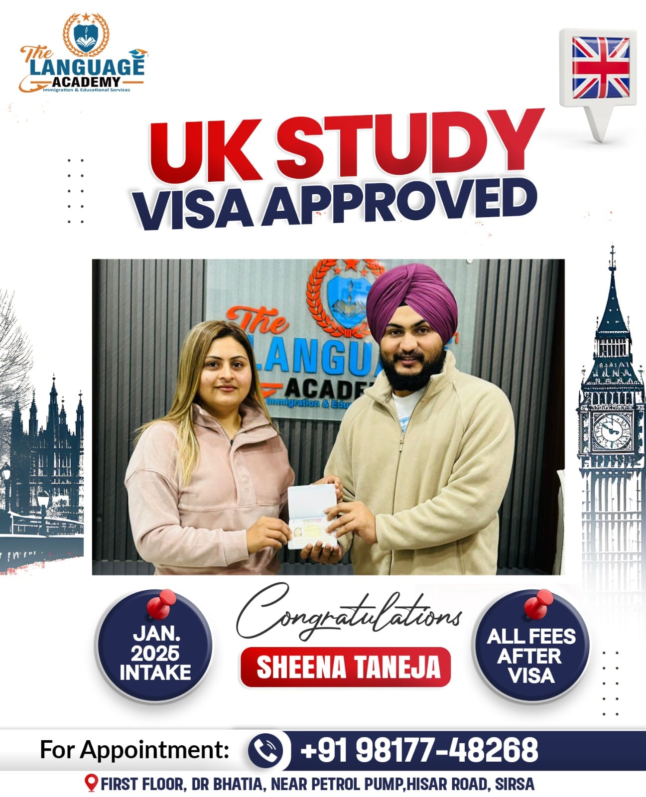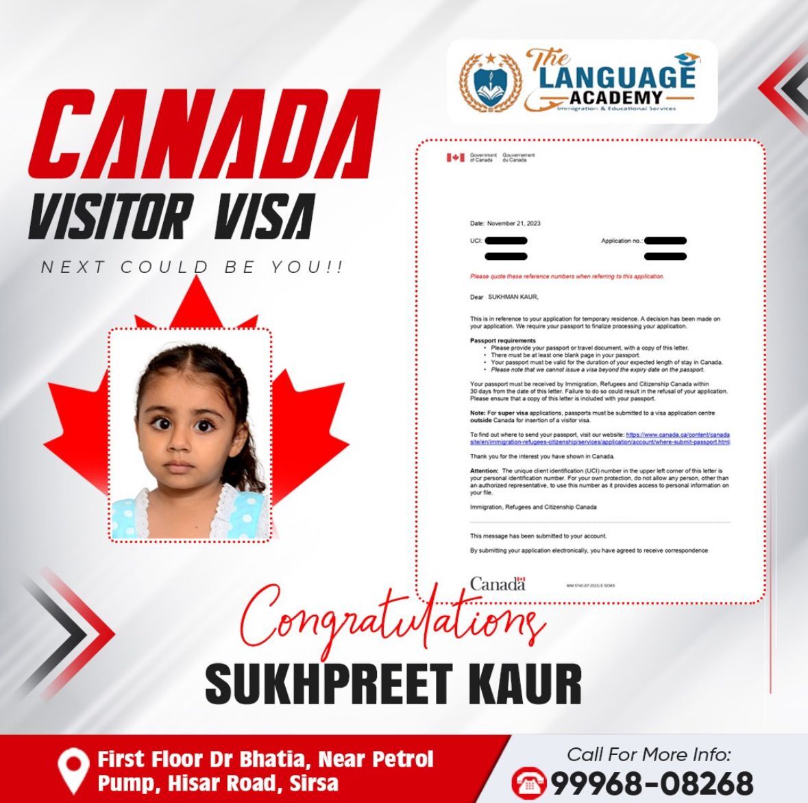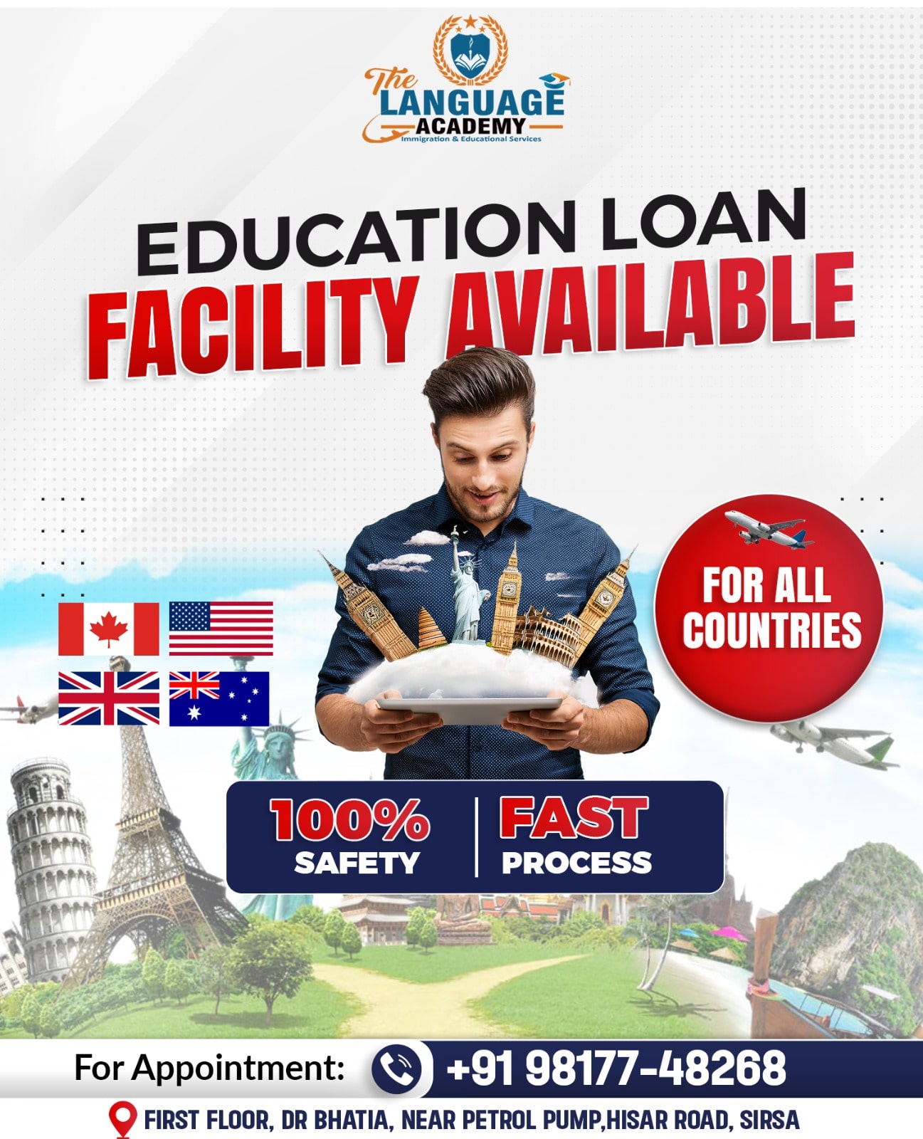Aim of The LANGUAGE ACADEMY Immigration & Educational Services Consultancy is to serve the applicants who are internationally relocating via Study, PR and Tourist. Our forte lies in providing proper guidance and step-by-step following so that the client gets complete knowledge on visa processing.